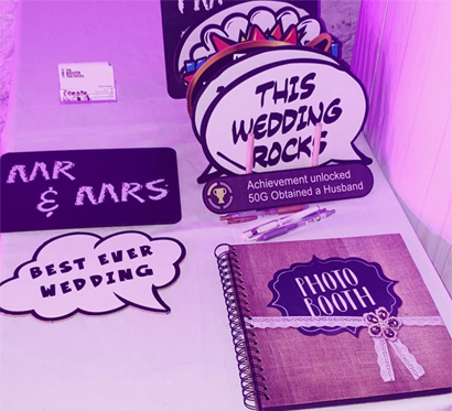 A photo booth attendant will be on hand to help you get the most from the photo booth and props. They will also encourage your wedding guests to fill out the guestbook.