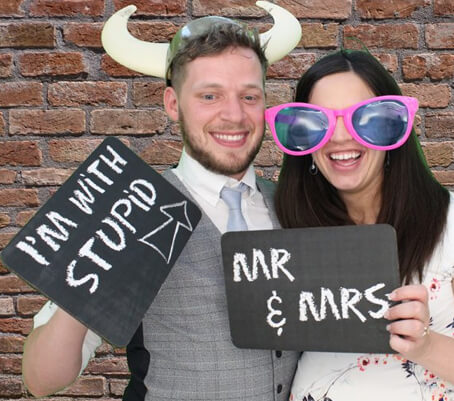 Each of our wedding photo booths come with a fully stocked prop chest, so that you can add some fun to your photos. This includes a selection of wedding themed props.